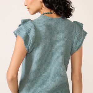 Crafted in a wool blend, the Stasia Pullover by Rails features a crew neckline, flutter short sleeves, a subtle ribbed texture, and a boxy, cropped silhouette.