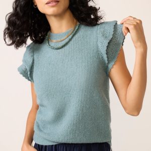 Crafted in a wool blend, the Stasia Pullover by Rails features a crew neckline, flutter short sleeves, a subtle ribbed texture, and a boxy, cropped silhouette.