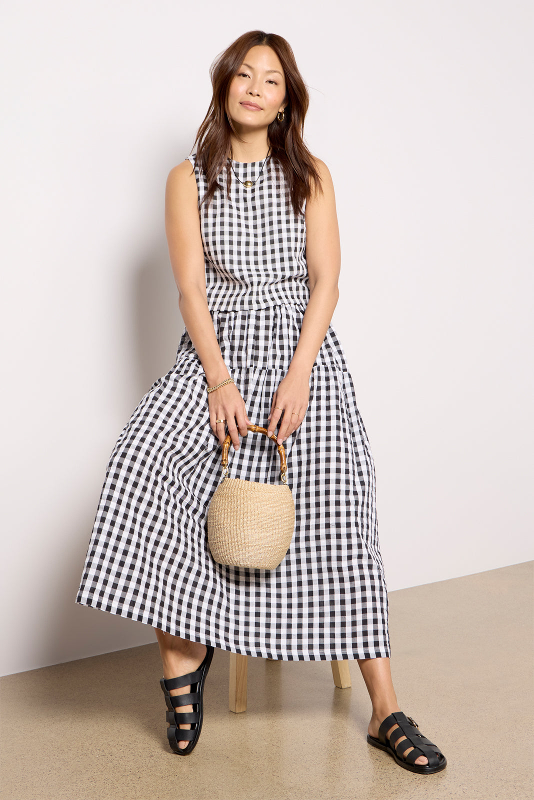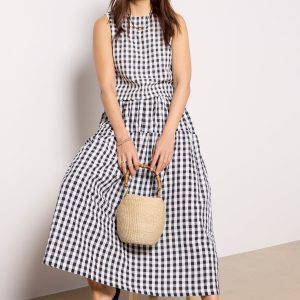 Finished in a spring-ready gingham print, this chic tank top by Emerson Fry features a boxy, cropped silhouette with a crew neckline and back button closures.Pairwith the matching Single Tier Maxi Skirt for a stylish two-piece set.