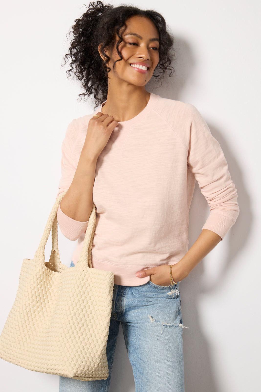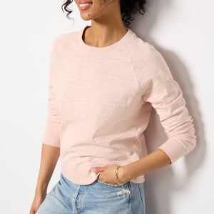 This crewneck pullover by Faherty will be your go-to all season long, crafted incomfy cotton slub fabric with a relaxed fit, long raglan sleeves, and ribbed trim at the collar, cuffs, and hem.