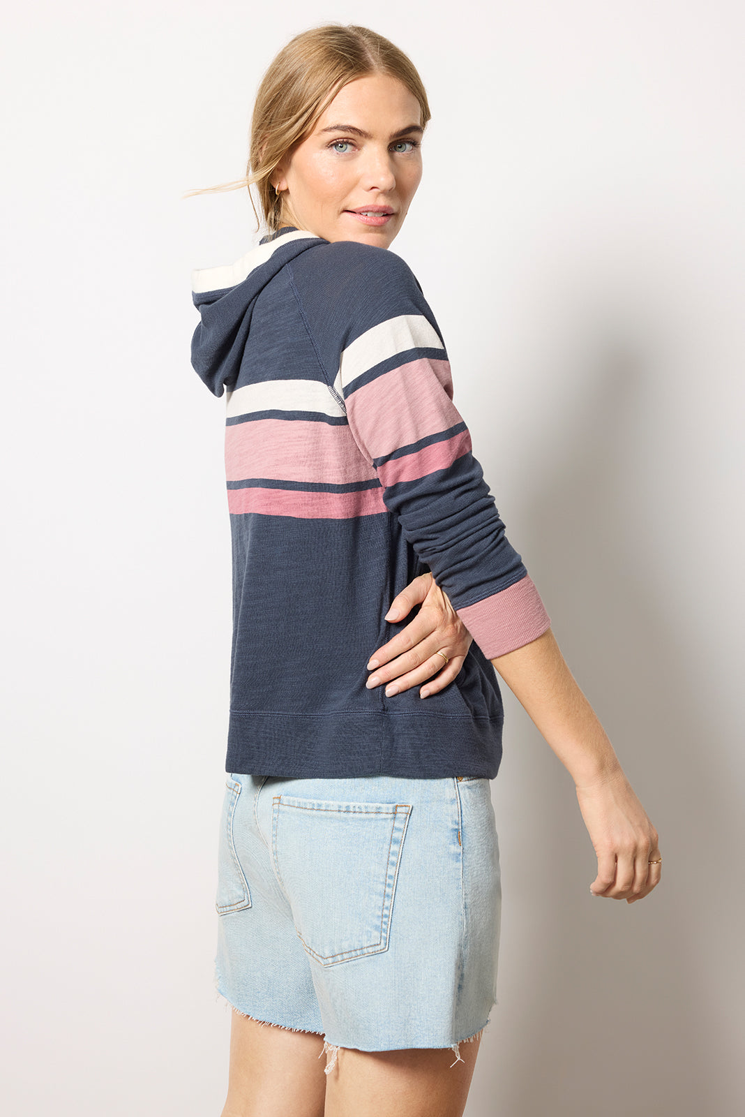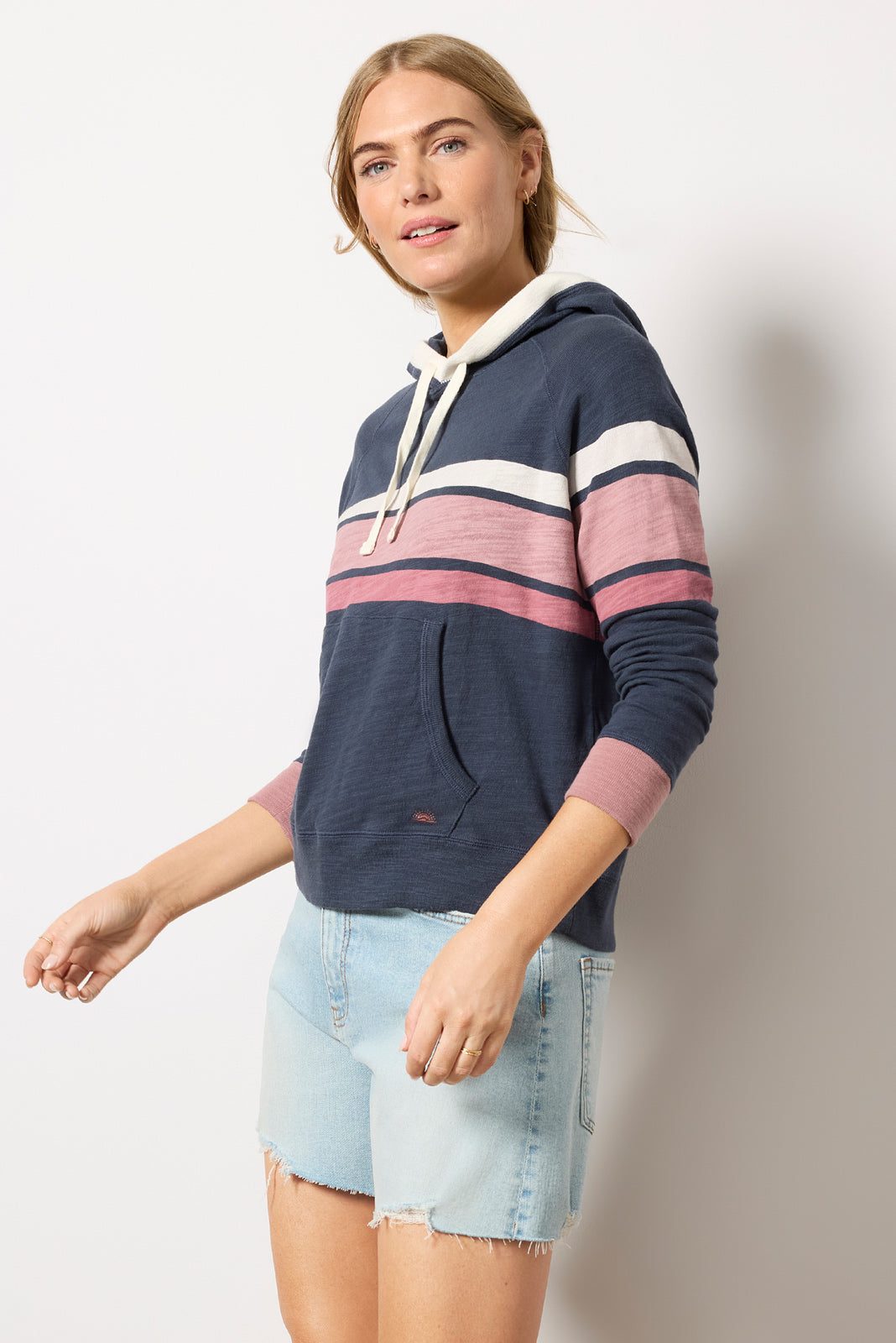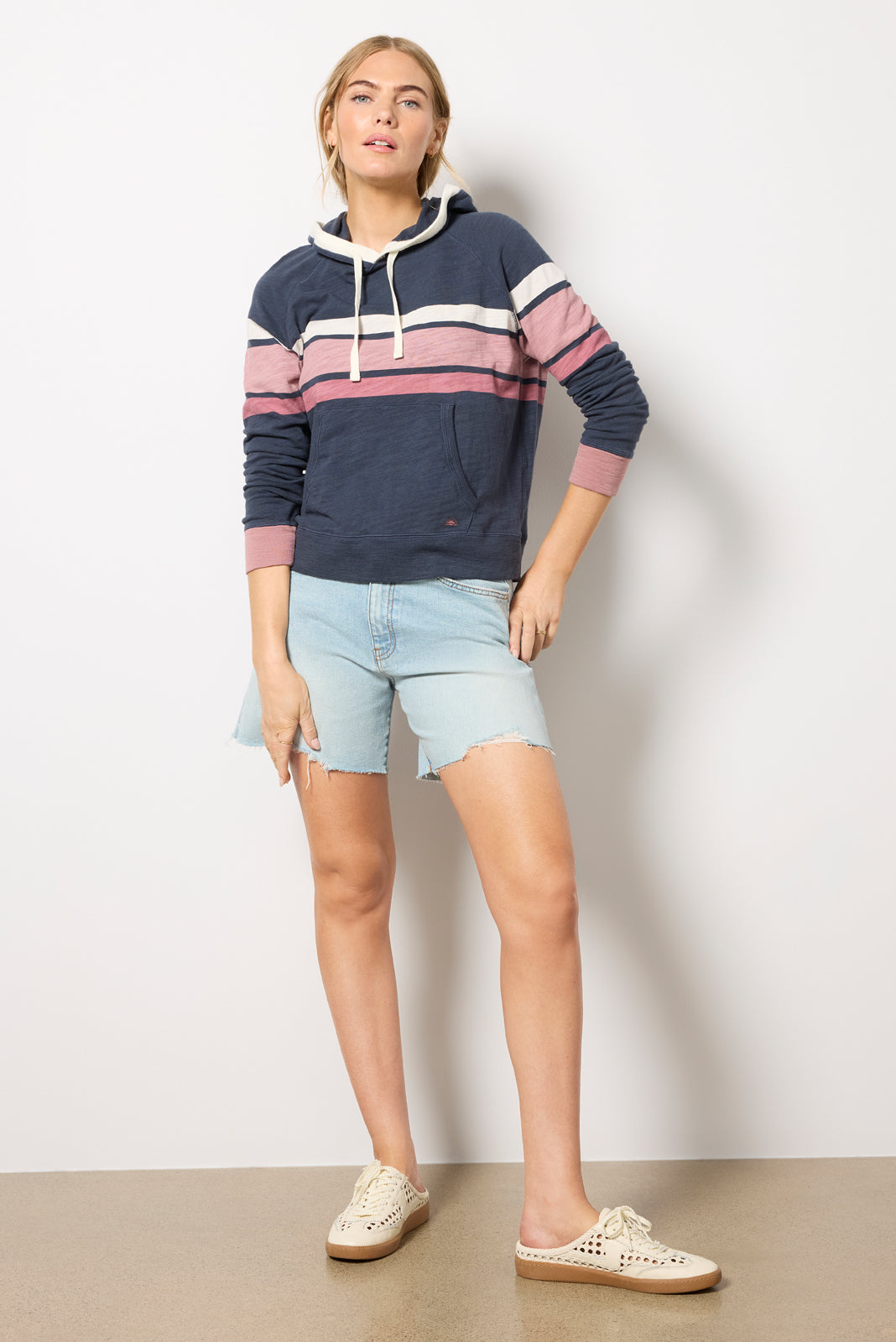 An easy, everyday staple, this striped Faherty sweatshirt features a relaxed silhouette with an adjustable drawstring hood, front kangaroo pocket, and soft, lightweight organic cotton slub fabric that’s perfect for layering.