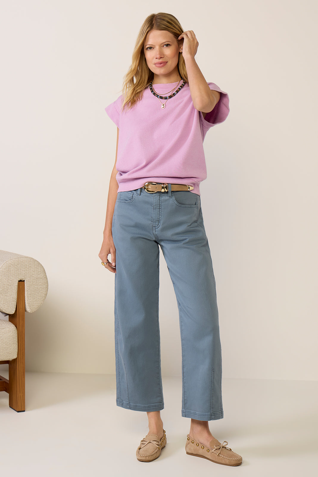 Perfect for everyday wear, thiseasy sweatshirt by EVEREVE features a crewneck silhouette with cap sleeves and a banded hem.