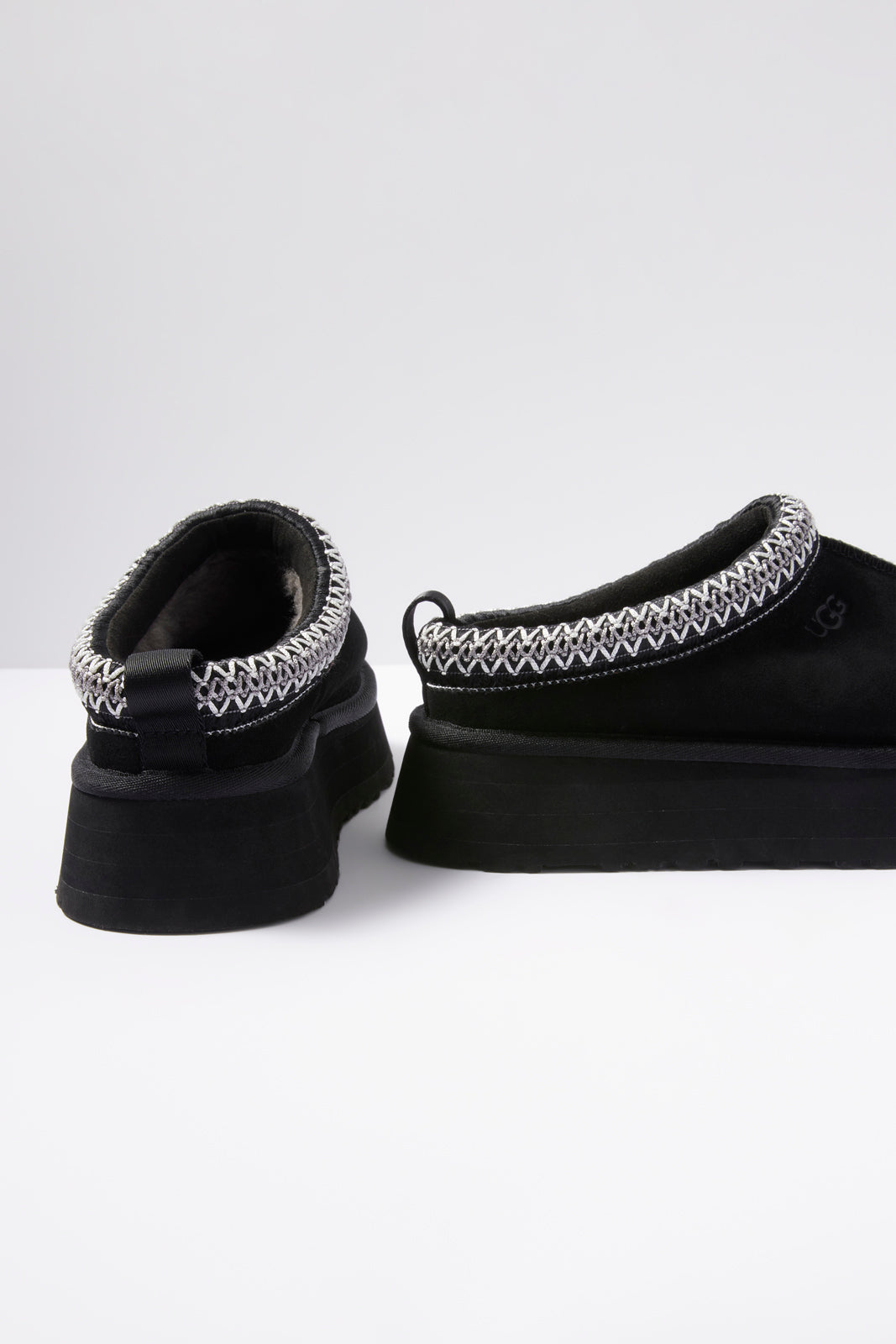 The UGG® Tazz platform slipper is crafted in a suede fabric with an EVA outsole and cozy UGGplush™ lining, a moisture-wicking textile made from a wool-rich blend but made to feel and wear like shearling.