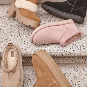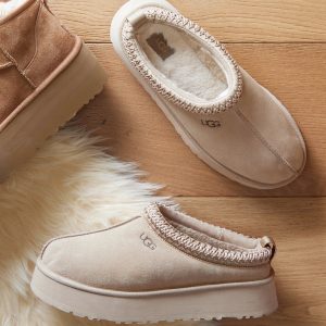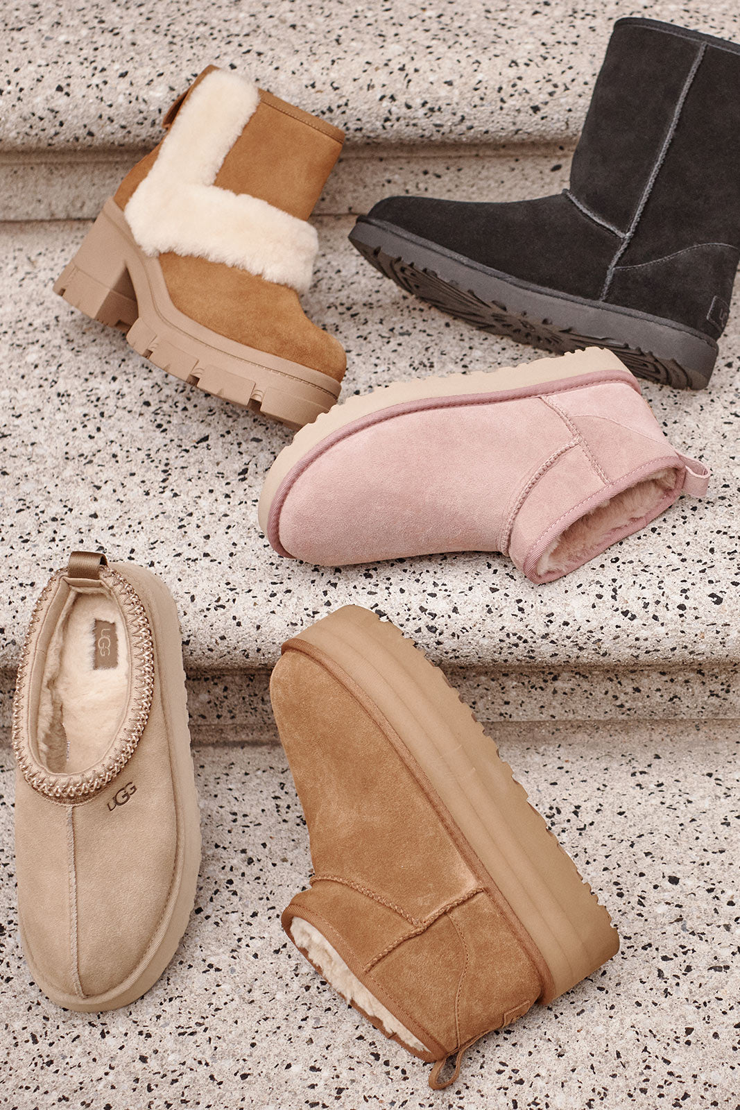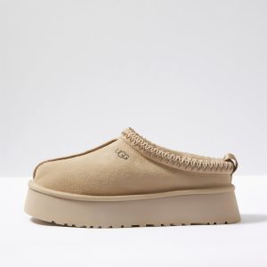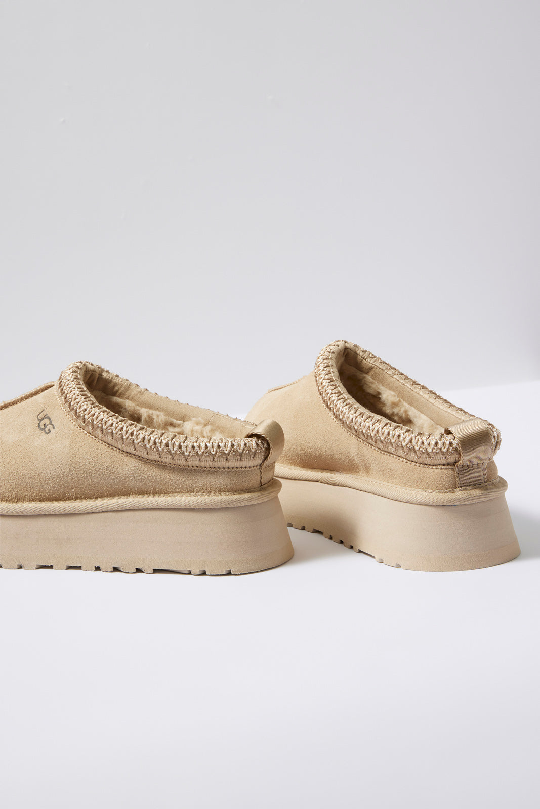 The UGG® Tazz platform slipper is crafted in a suede fabric with an EVA outsole and cozy UGGplush™ lining, a moisture-wicking textile made from a wool-rich blend but made to feel and wear like shearling.