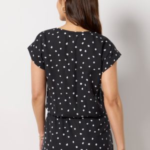 Finished in polka dots, the Textured V Neck Top by Cloth & Stone features a v-neckline, rolled short sleeves, and a relaxed silhouette. Make it a set by pairing it with theMatty Tiered Skirt.