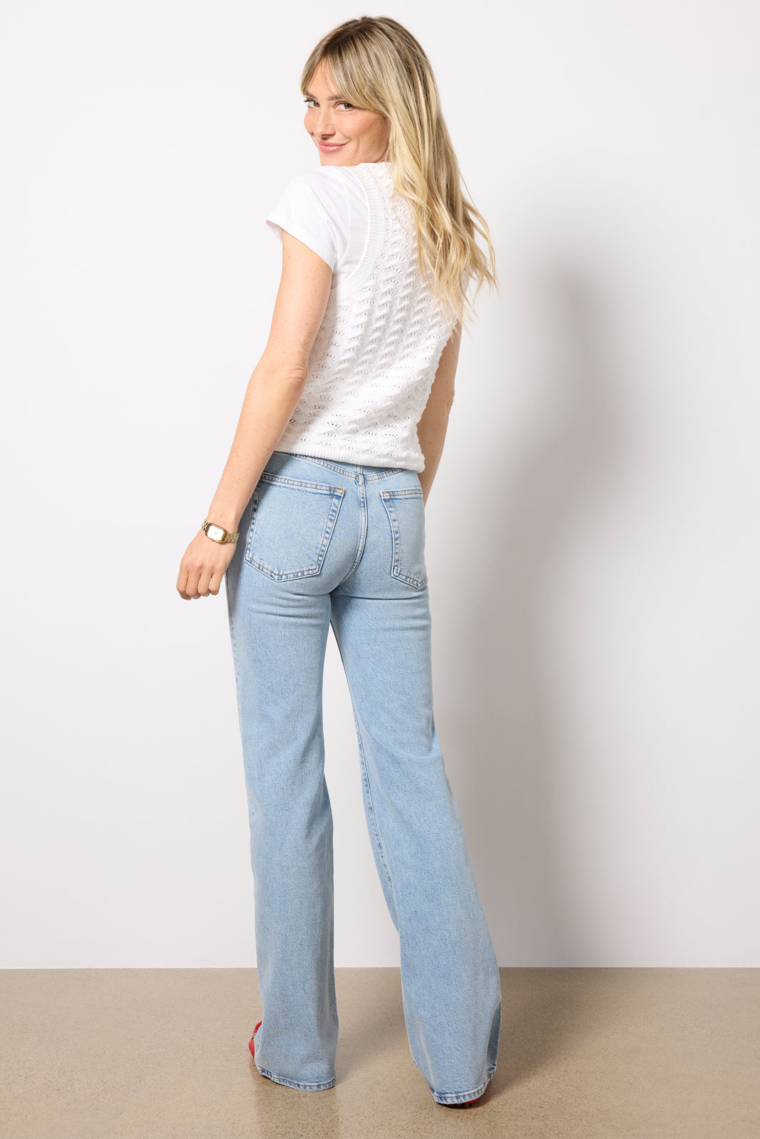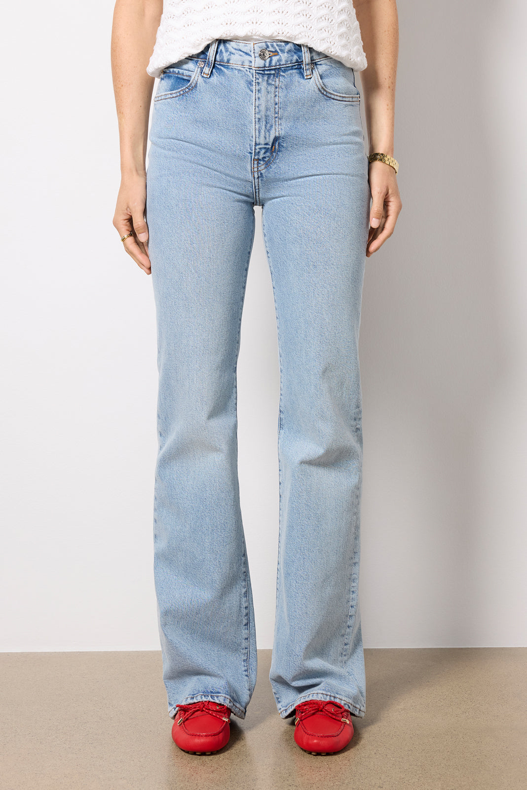 Designed with a vintage bootcut silhouette, the Arrow jean by FRAME features a high-rise fit, full-length leg, and soft, structured cotton denim with a hint of stretch.