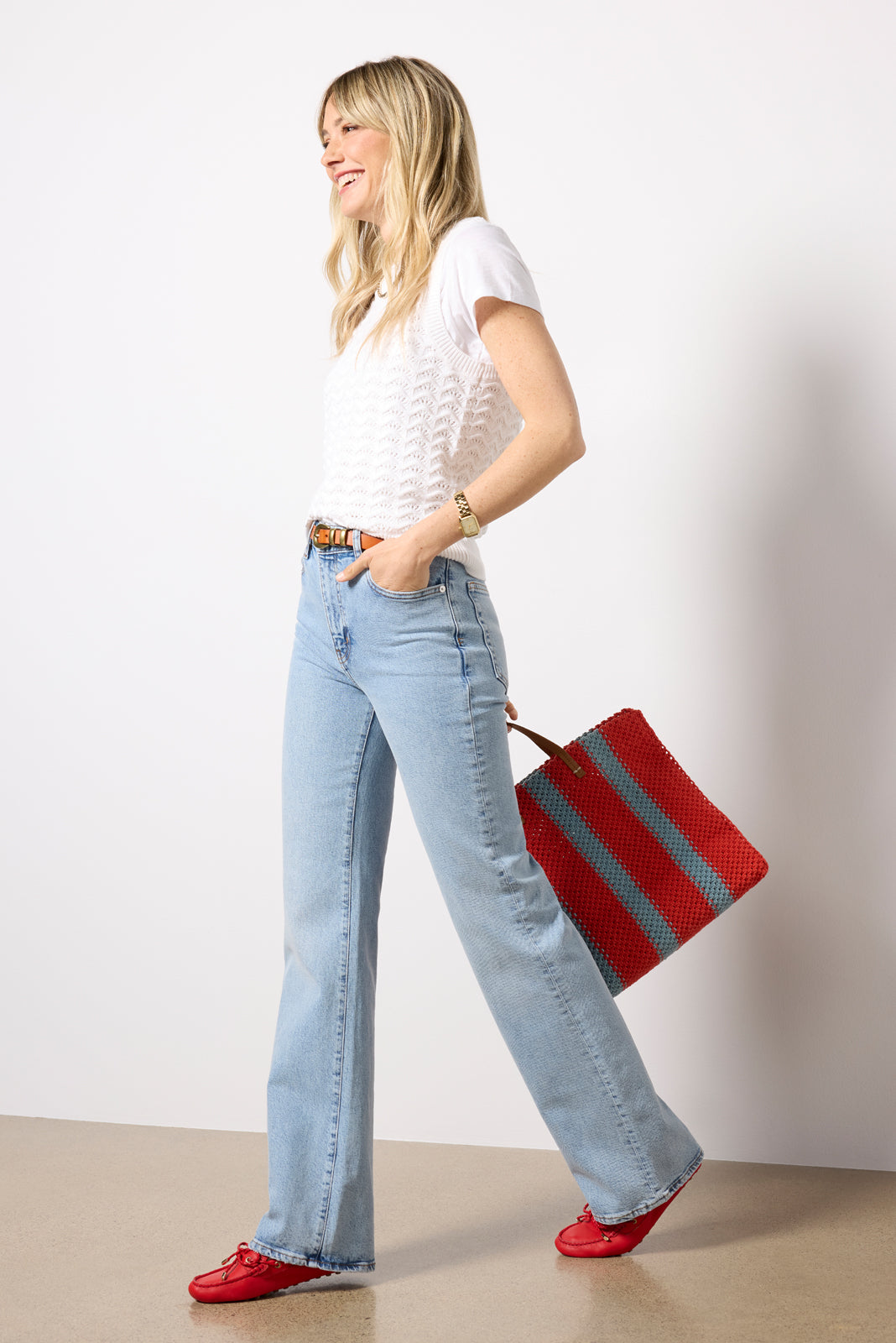 Designed with a vintage bootcut silhouette, the Arrow jean by FRAME features a high-rise fit, full-length leg, and soft, structured cotton denim with a hint of stretch.