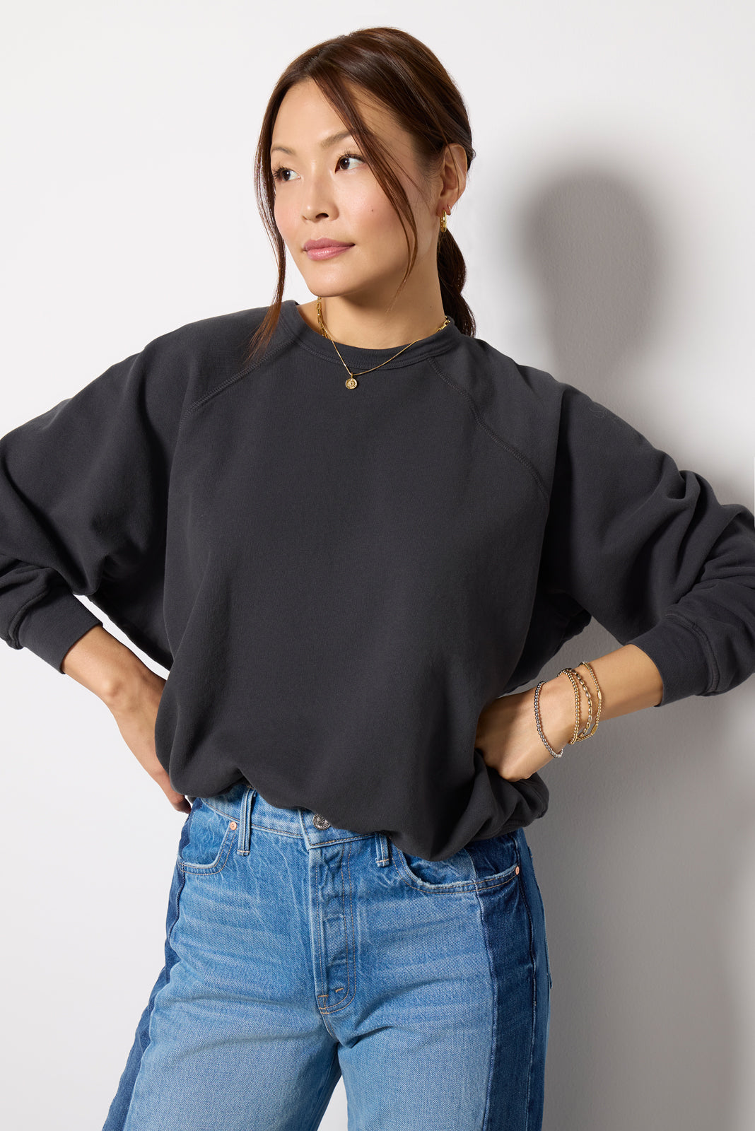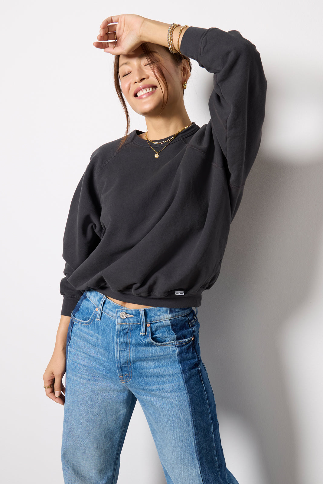 Stay comfy-chic in the Biggie Concert sweatshirt by MOTHER. Crafted in soft, comfortable cotton, this raglan pullover features a crew neckline, ribbed trim, and an easy, relaxed fit.