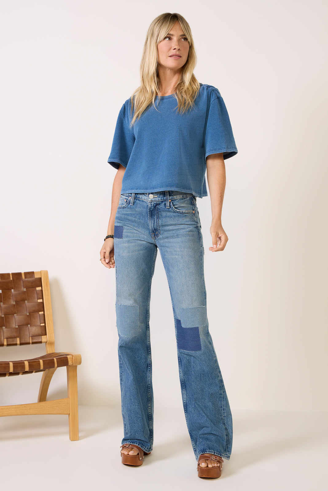 Patchwork details add a lived-in feel to The Bookie Heel bootcut jeans by MOTHER, finished in rigid cotton denim and a full-length relaxed leg.