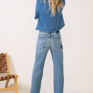 Patchwork details add a lived-in feel to The Bookie Heel bootcut jeans by MOTHER, finished in rigid cotton denim and a full-length relaxed leg.