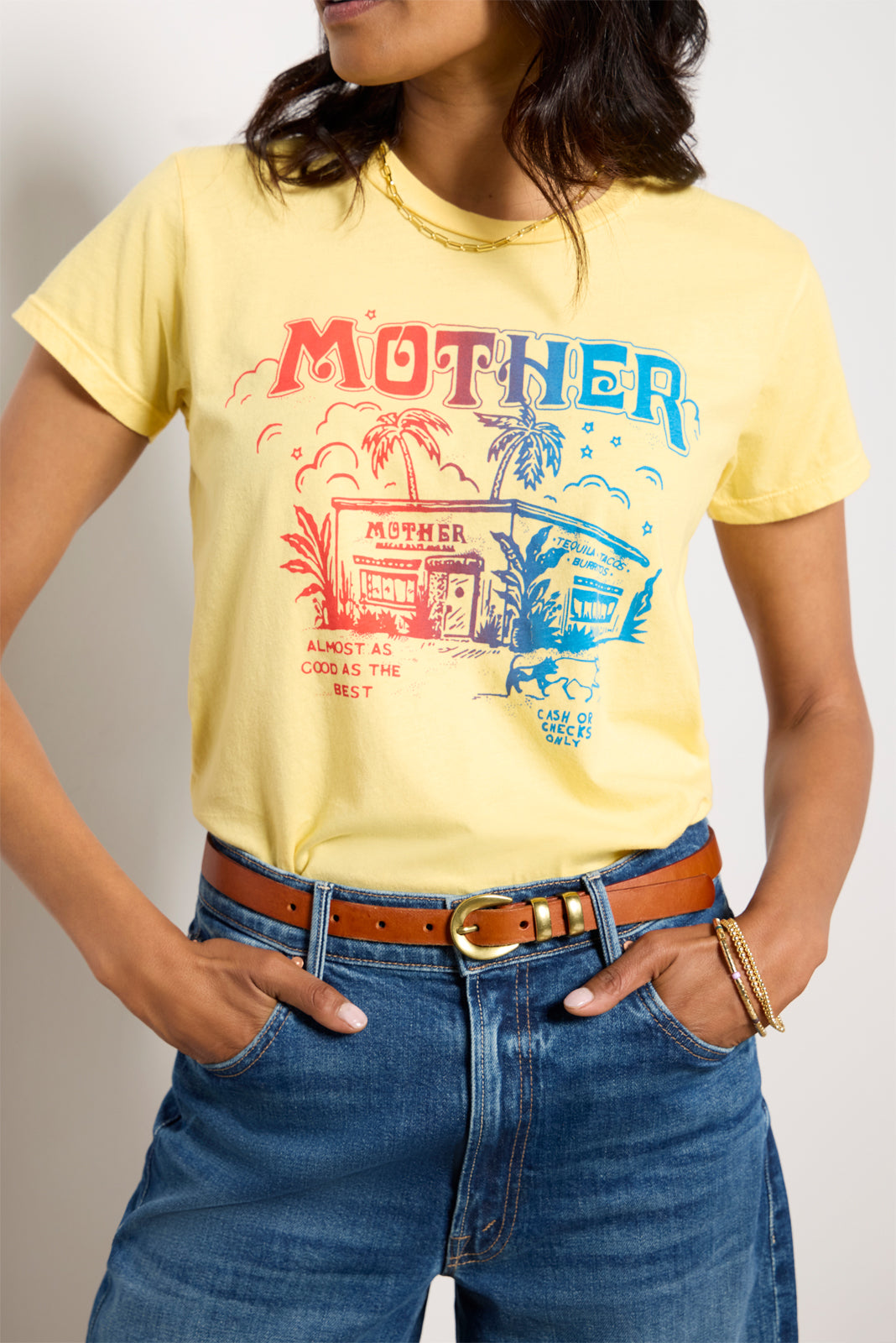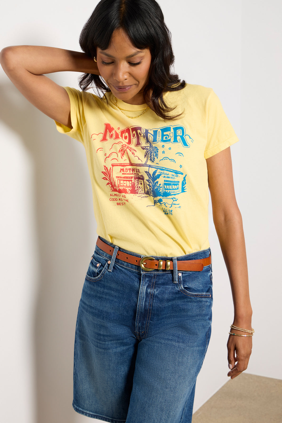 Top off your tee collection with The Boxy Goodie Goodie graphic t-shirt by MOTHER, crafted in soft cotton fabric with a crew neckline, short sleeves, and a slim fit for a vintage-inspired feel.