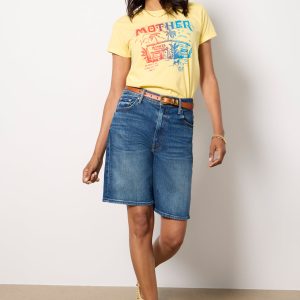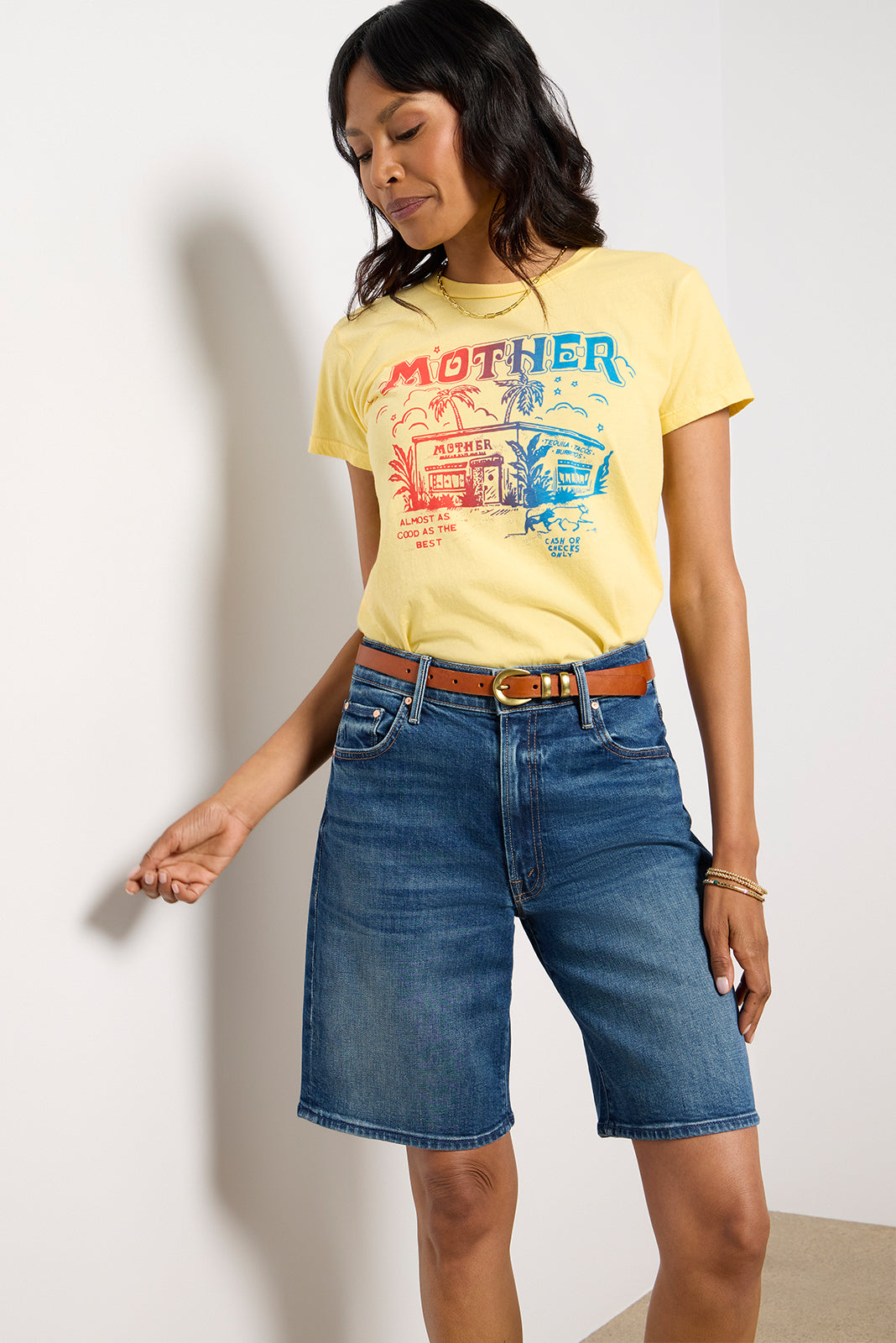 Top off your tee collection with The Boxy Goodie Goodie graphic t-shirt by MOTHER, crafted in soft cotton fabric with a crew neckline, short sleeves, and a slim fit for a vintage-inspired feel.