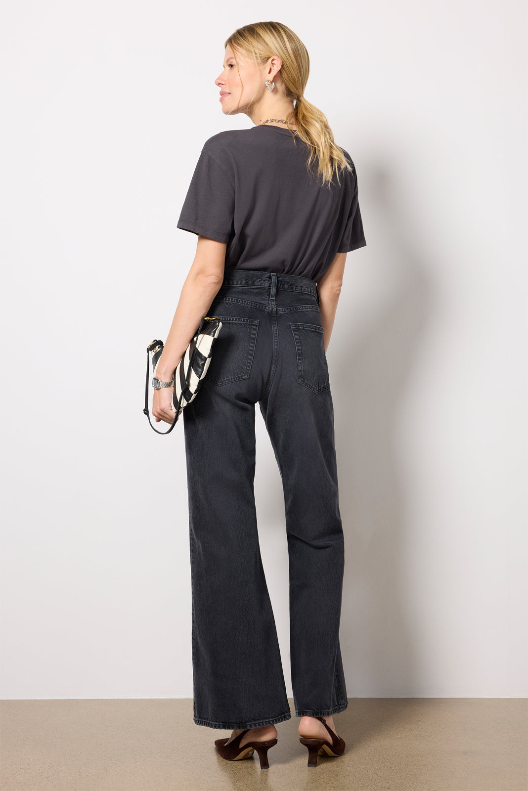 A relaxed, flared leg and versatile black wash make The Lax jean by FRAME the perfect day-to-night denim staple, featuring a high-rise fit, full-length inseam, and rigid cotton denim for a vintage feel.