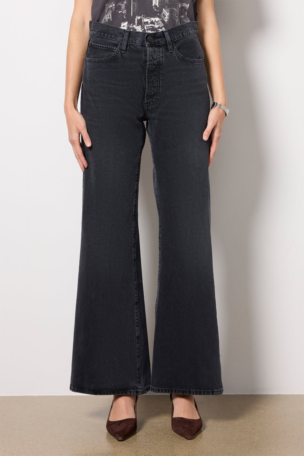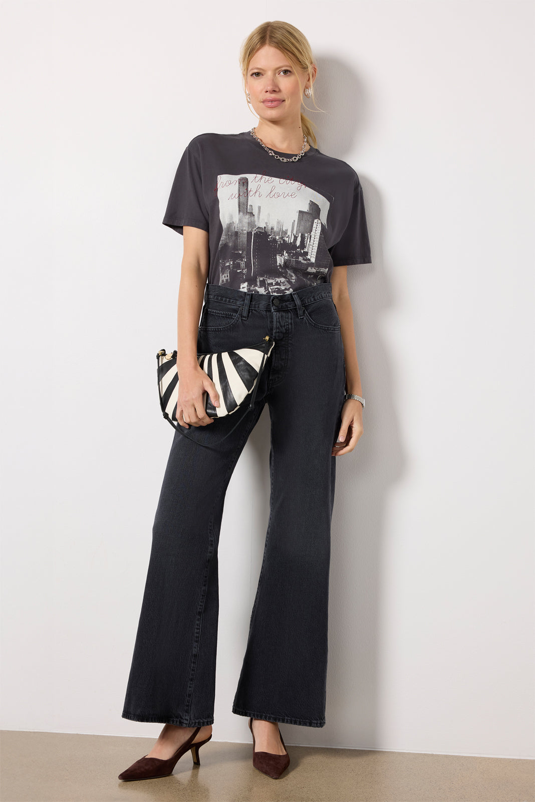 A relaxed, flared leg and versatile black wash make The Lax jean by FRAME the perfect day-to-night denim staple, featuring a high-rise fit, full-length inseam, and rigid cotton denim for a vintage feel.