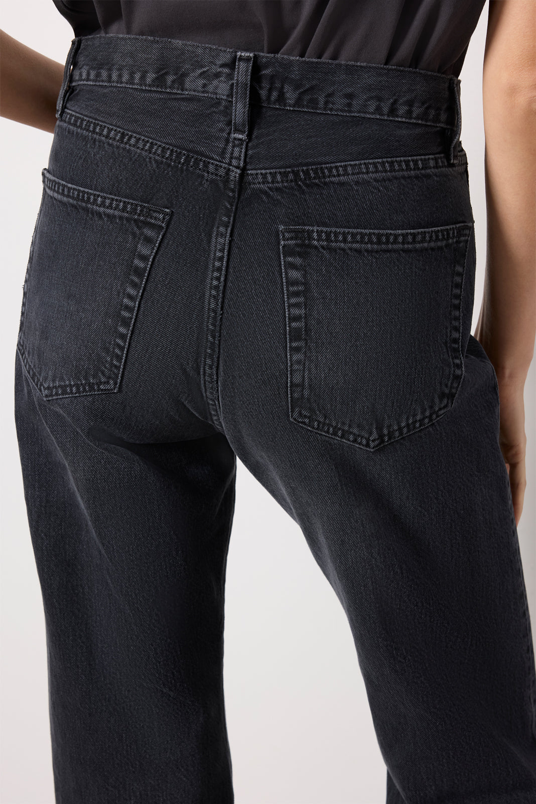 A relaxed, flared leg and versatile black wash make The Lax jean by FRAME the perfect day-to-night denim staple, featuring a high-rise fit, full-length inseam, and rigid cotton denim for a vintage feel.