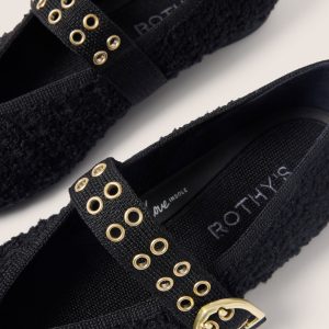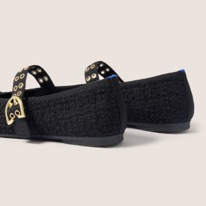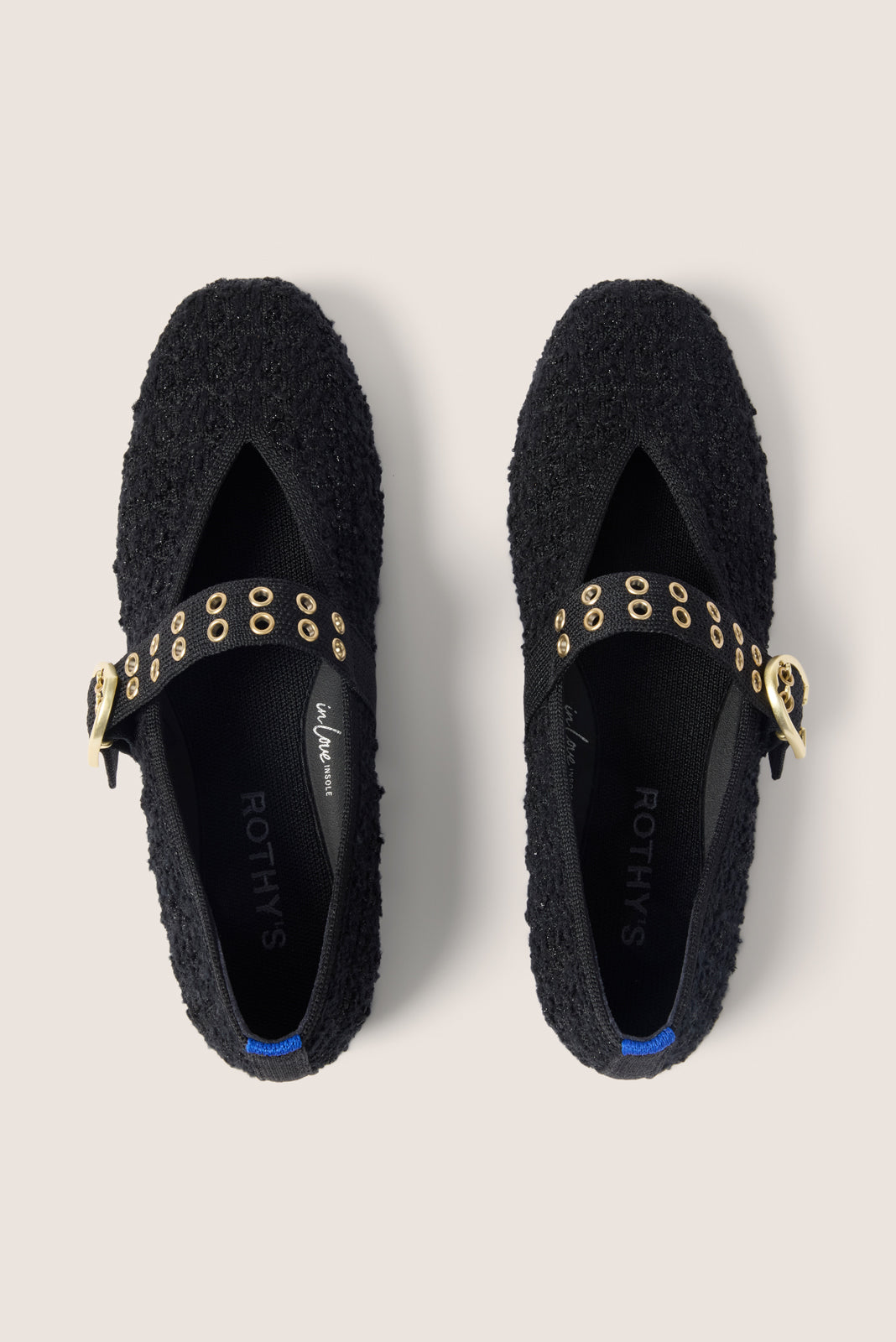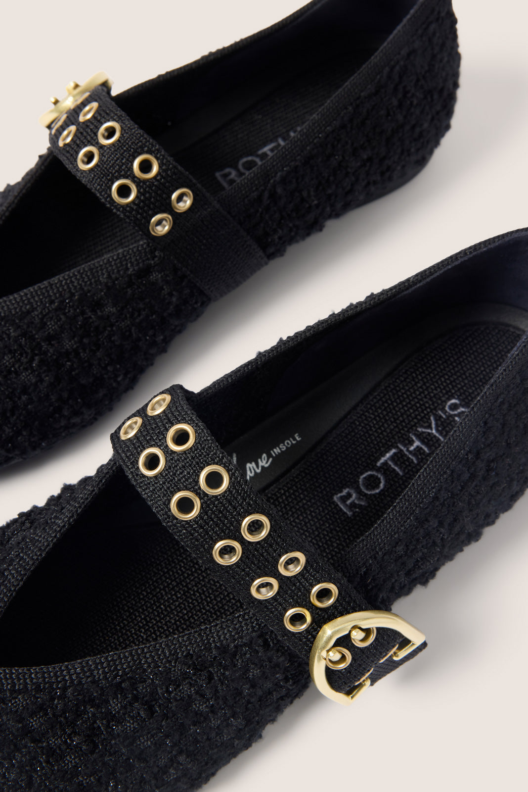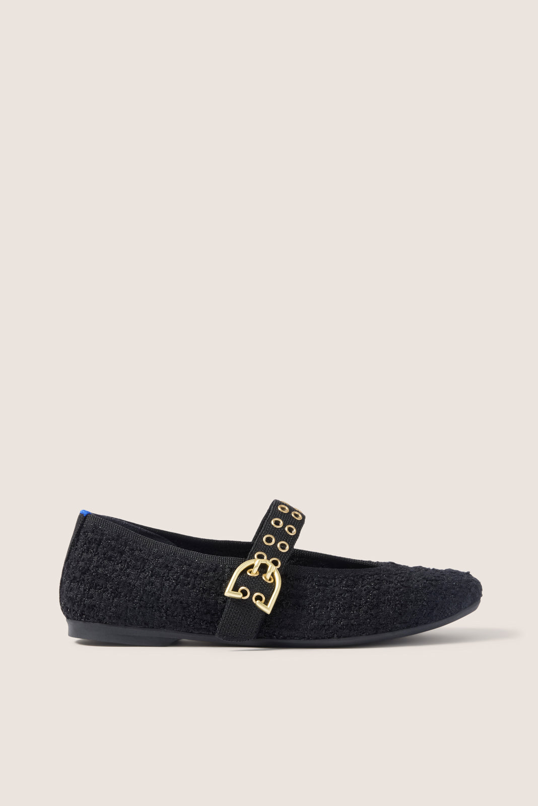 Finished with a luxe bouclé knit upper, these Mary Jane flats by Rothy’s feature a chic square toe, V-shaped vamp, and adjustable straps with gold-tone hardware for a modern edge.