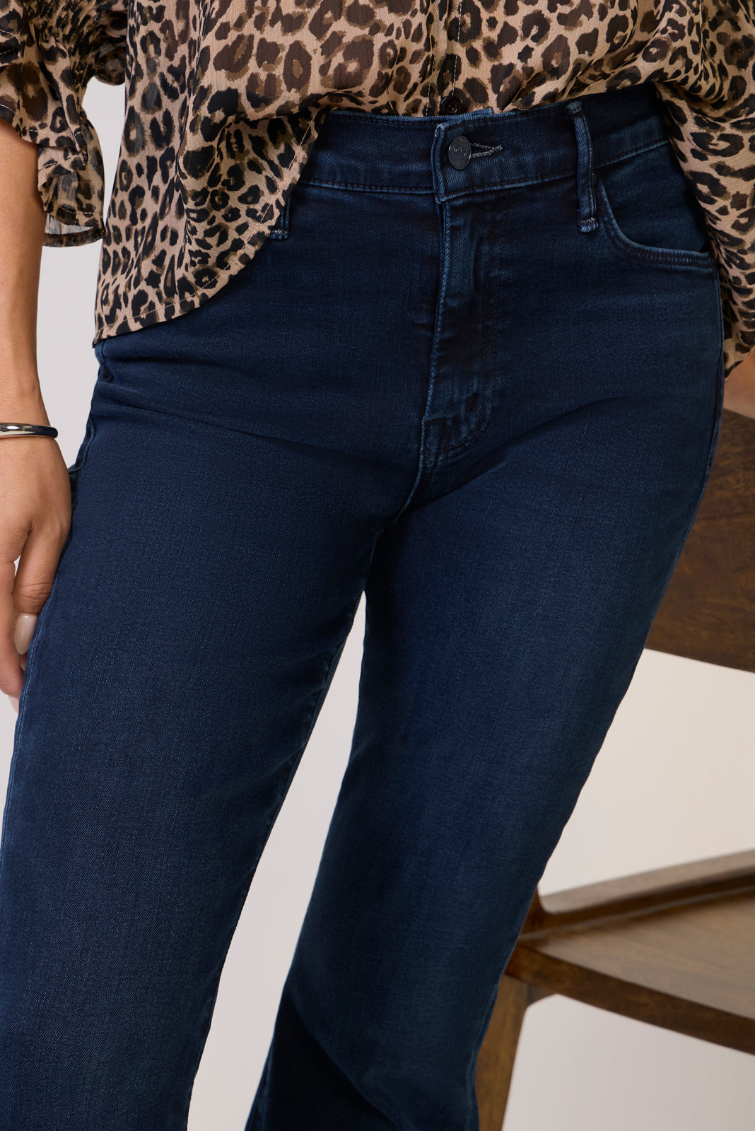 The Lil Weekender is a petite version of MOTHER’s signature flared jean, featuring a mid-rise waist, frayed hems, and soft dark-wash denim with a touch of stretch. Designed to complement petite body types, these jeans feature a higher knee placement, shorter inseam, and shorter rise for a perfect, always-flattering fit.