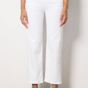 A relaxed straight leg defines the stylish silhouette of The Rambler ZipAnkle jean by MOTHER, crafted in soft stretch denim with a high-rise fit, bright white wash, and clean hems.