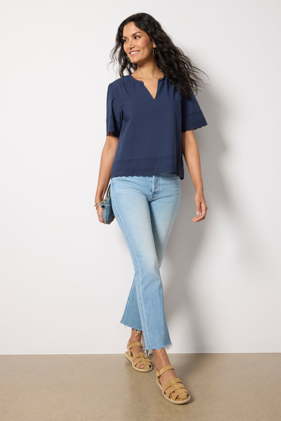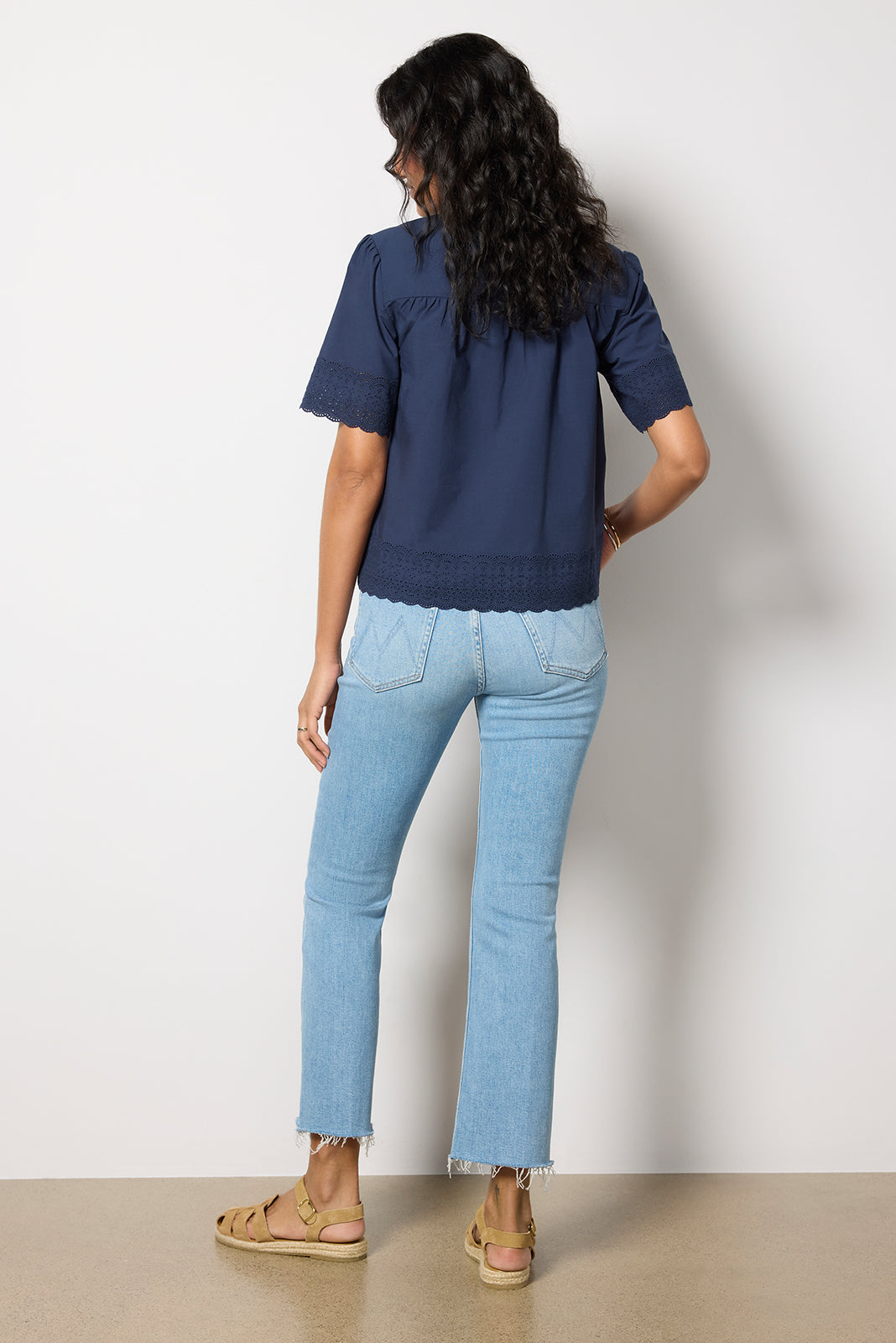 A versatile denim staple, the Tripper Floodjean by MOTHER features a straight leg silhouette with a high-rise waist, raw hems, and a lightblue wash that’s perfect for dressing up or down.