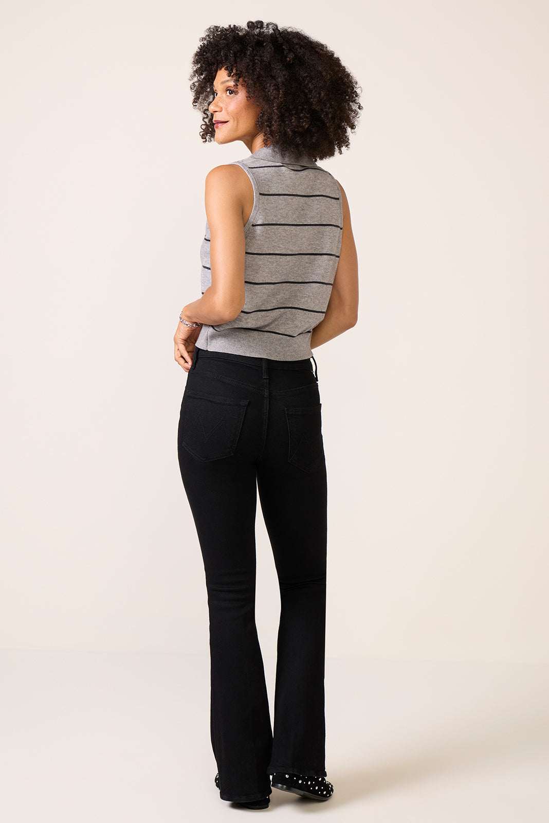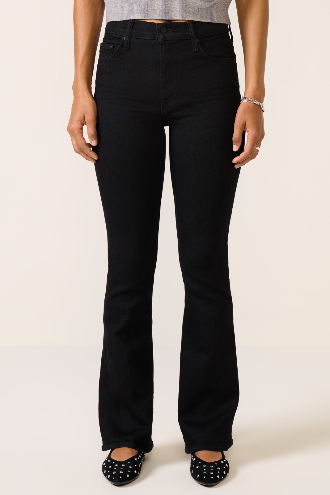 Finished with full-lengthclean hems,The Weekender flare jean by MOTHER is craftedfrom soft stretch denim with a flattering mid-rise waist andversatile black wash.
