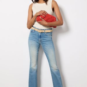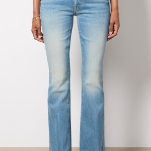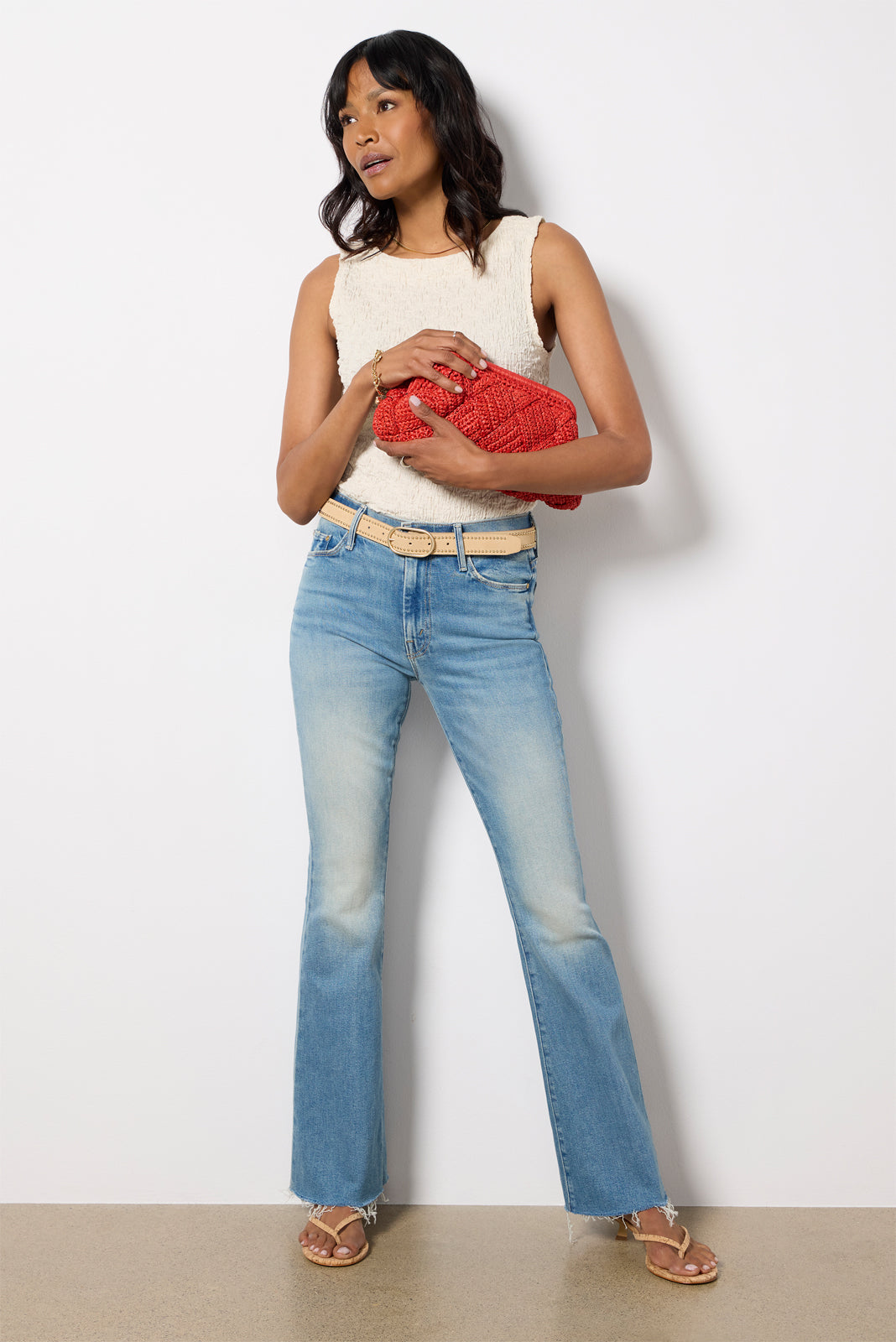 Finished with full-length raw hems, the Weekender Fray flare jean by MOTHER is crafted in soft stretch denimwith a flattering mid-rise waist and faded light blue wash.