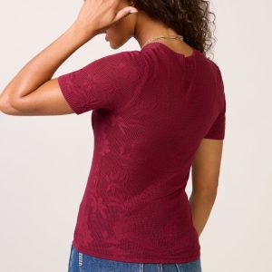 Your favorite top by Z Supply is back in a new silhouette. The semi-sheer Tibi Tee features a fitted silhouette with delicate floral details and a crew neckline.