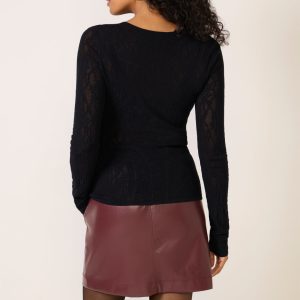 A flattering scoop neckline updates this must-have mesh top by Z Supply. The Tibi semi-sheer top features a fitted silhouette with long sleeves and delicate floral details.