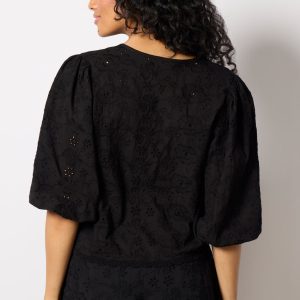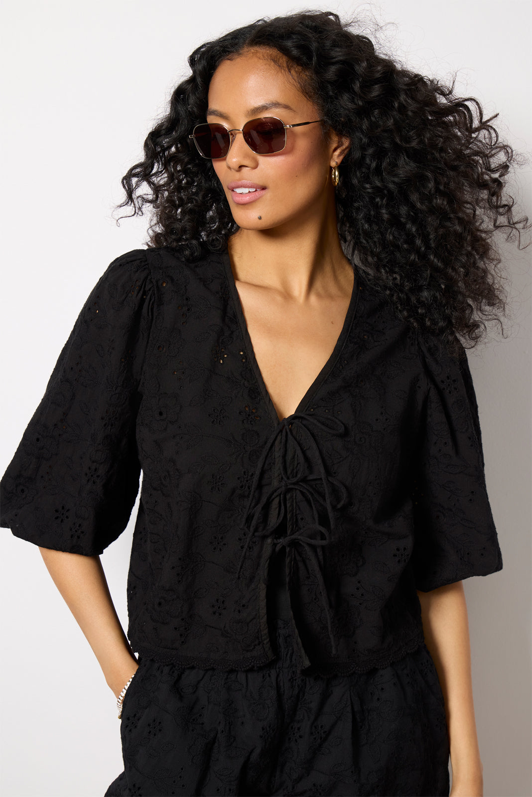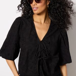 Summery-chic, thiseyelet top by Bobi is finished in embroidered cotton fabric and features a relaxed, cropped silhouettewith front tie details and elbow-length sleeves. Make it a two-piece set with the matching Eyelet Short.
