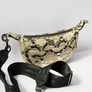 Perfect for carrying day to night, the Tiny Dancer bag by Think Royln features a mini hobo silhouette with asnake-embossed cowhide exterior and top zipper closure. It comes with two detachable strap options—a metal chain strap to wear on the shoulder or an adjustable crossbody strap to go hands-free.