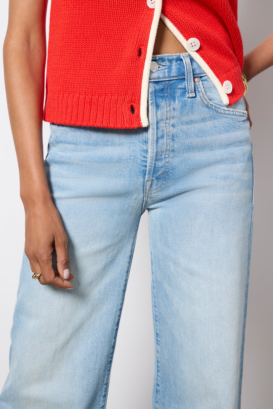 Elevate your look with the Tomcat Roller wide leg jean by MOTHER, crafted in soft, semi-rigid denim with a button-fly closure, full-length inseam, and clean hems.