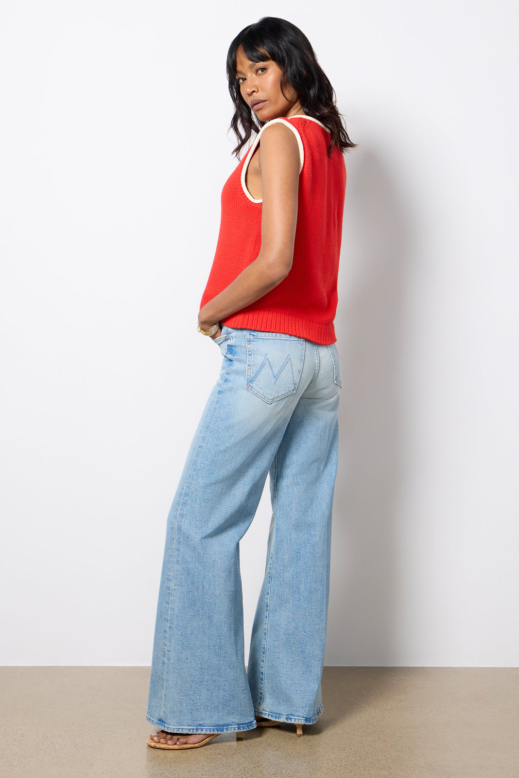 Elevate your look with the Tomcat Roller wide leg jean by MOTHER, crafted in soft, semi-rigid denim with a button-fly closure, full-length inseam, and clean hems.