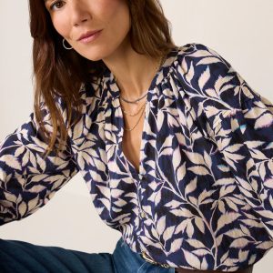 Crafted in a crisp cotton poplin, the Vasia Blouse by Rails features a split neckline, front button closures, raglan sleeves, and a delicate vine print throughout.