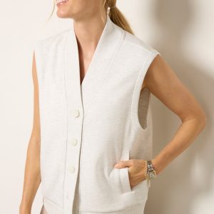 Crafted from their signatureDoubleSoft® knit fabric, the Vicky vest by Varley is a must-have for weekend wear, featuring a relaxed, sleeveless silhouette with front button closures, side pockets, and ribbed trim.
