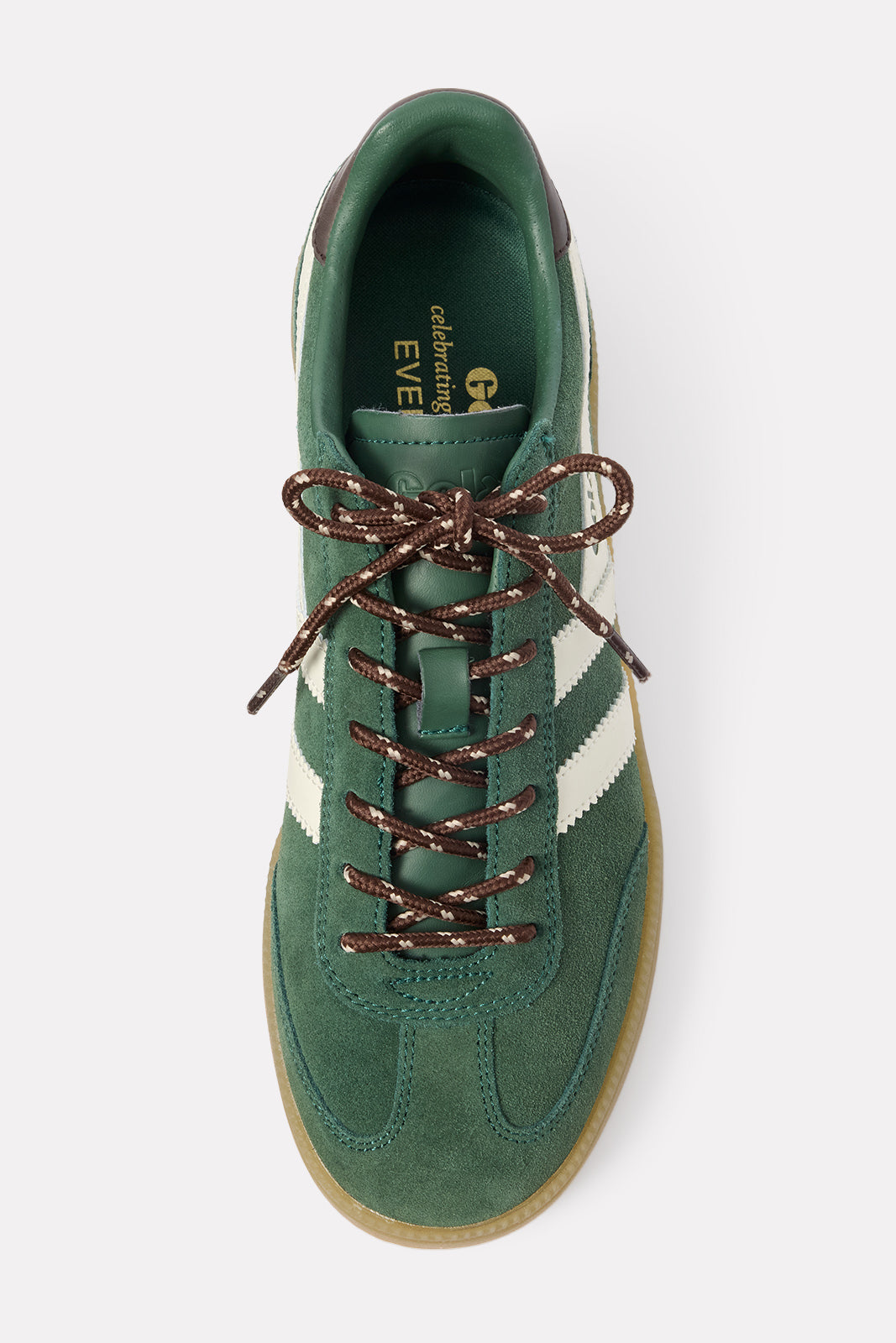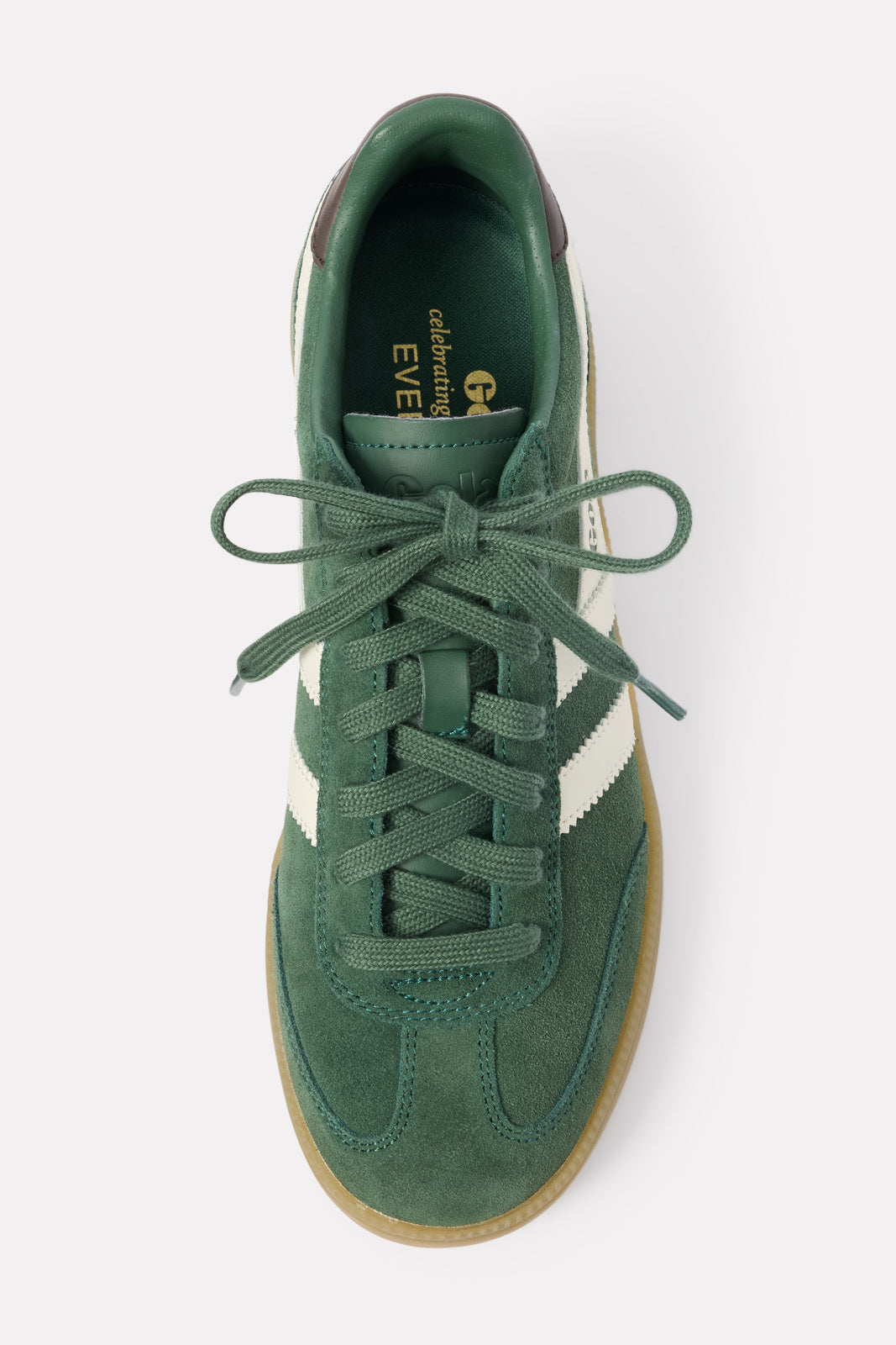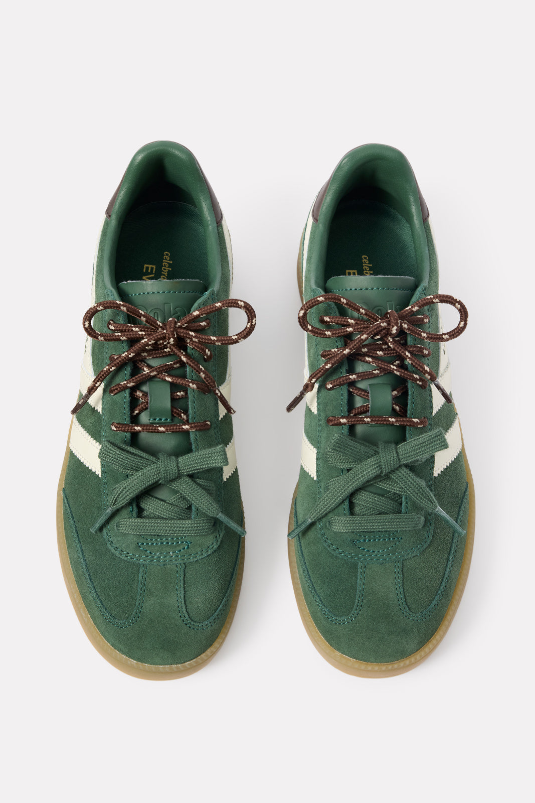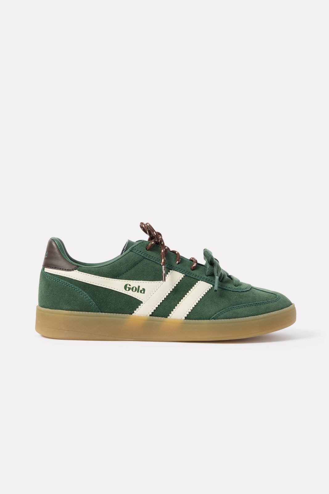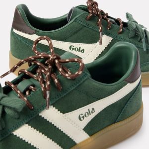 A sporty paneled design defines these chic low-top sneakers by Gola, featuring agreen suede upper,gum sole, andtwo lace options for a customizable look.