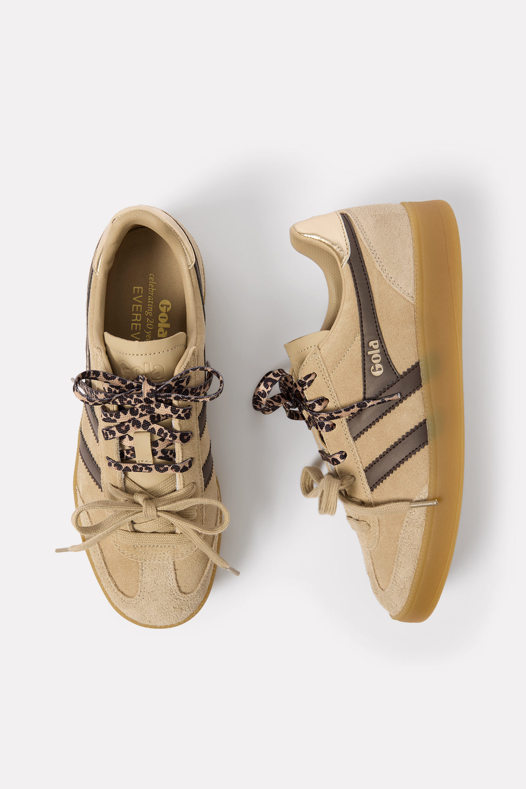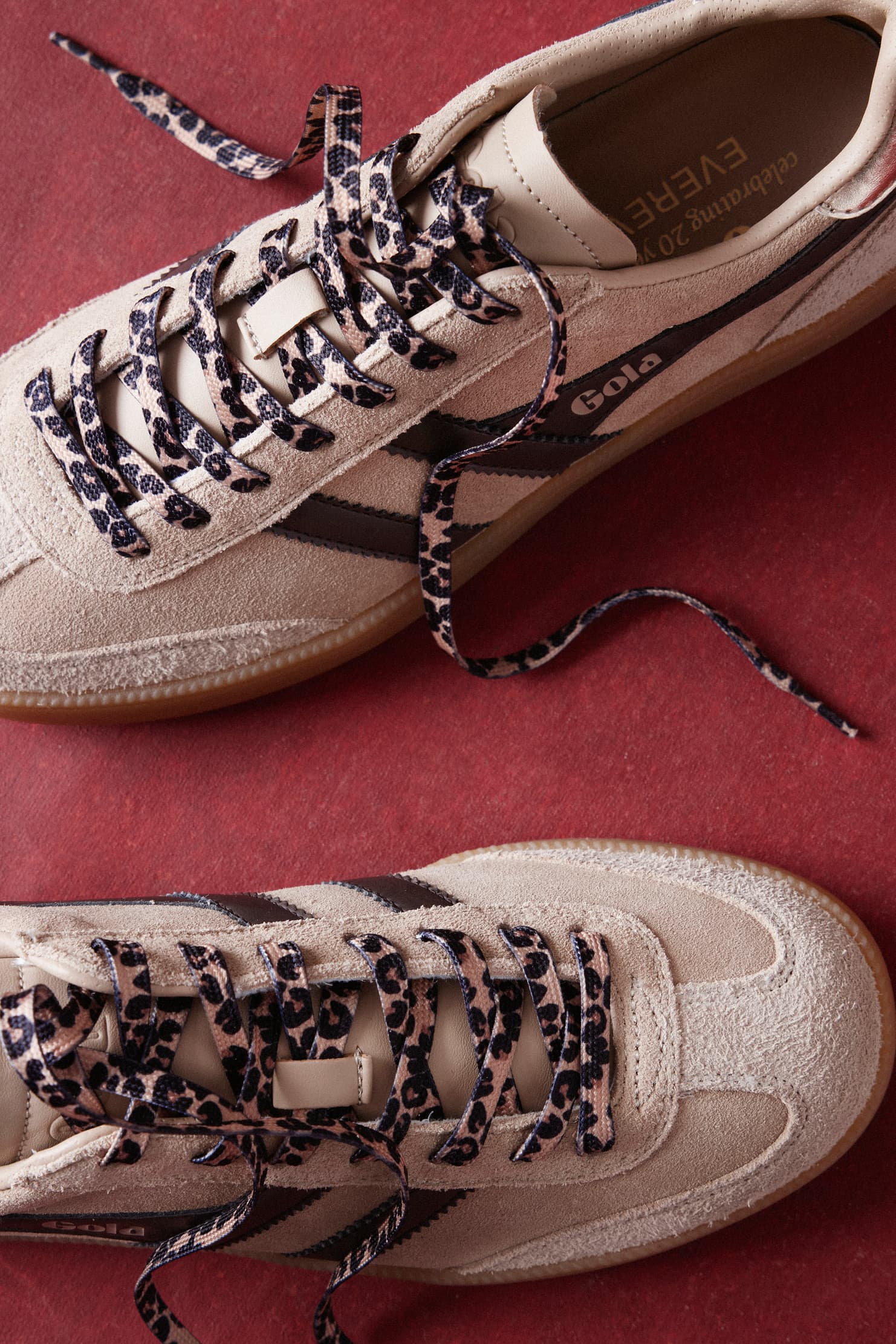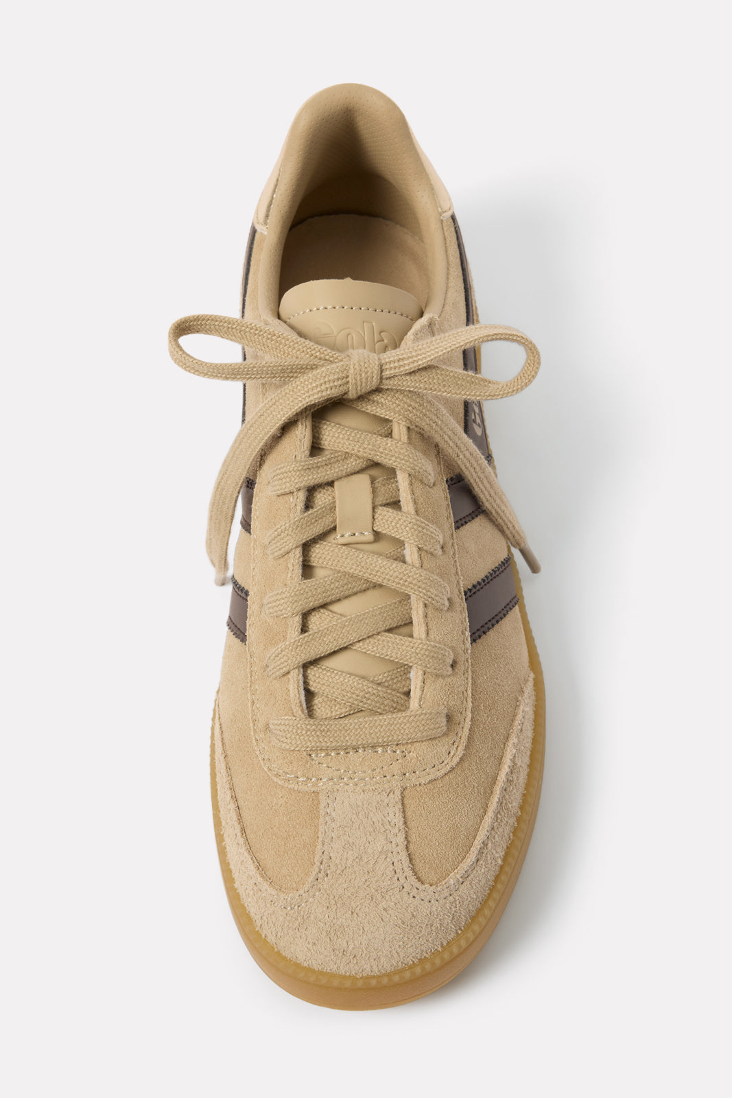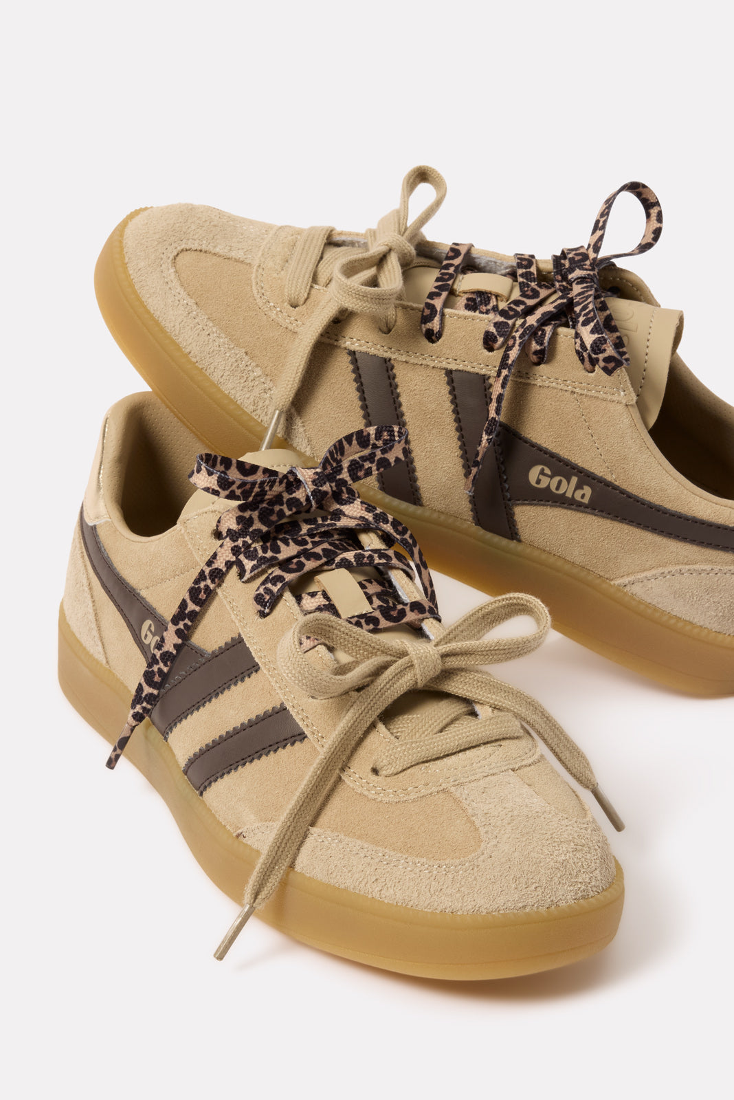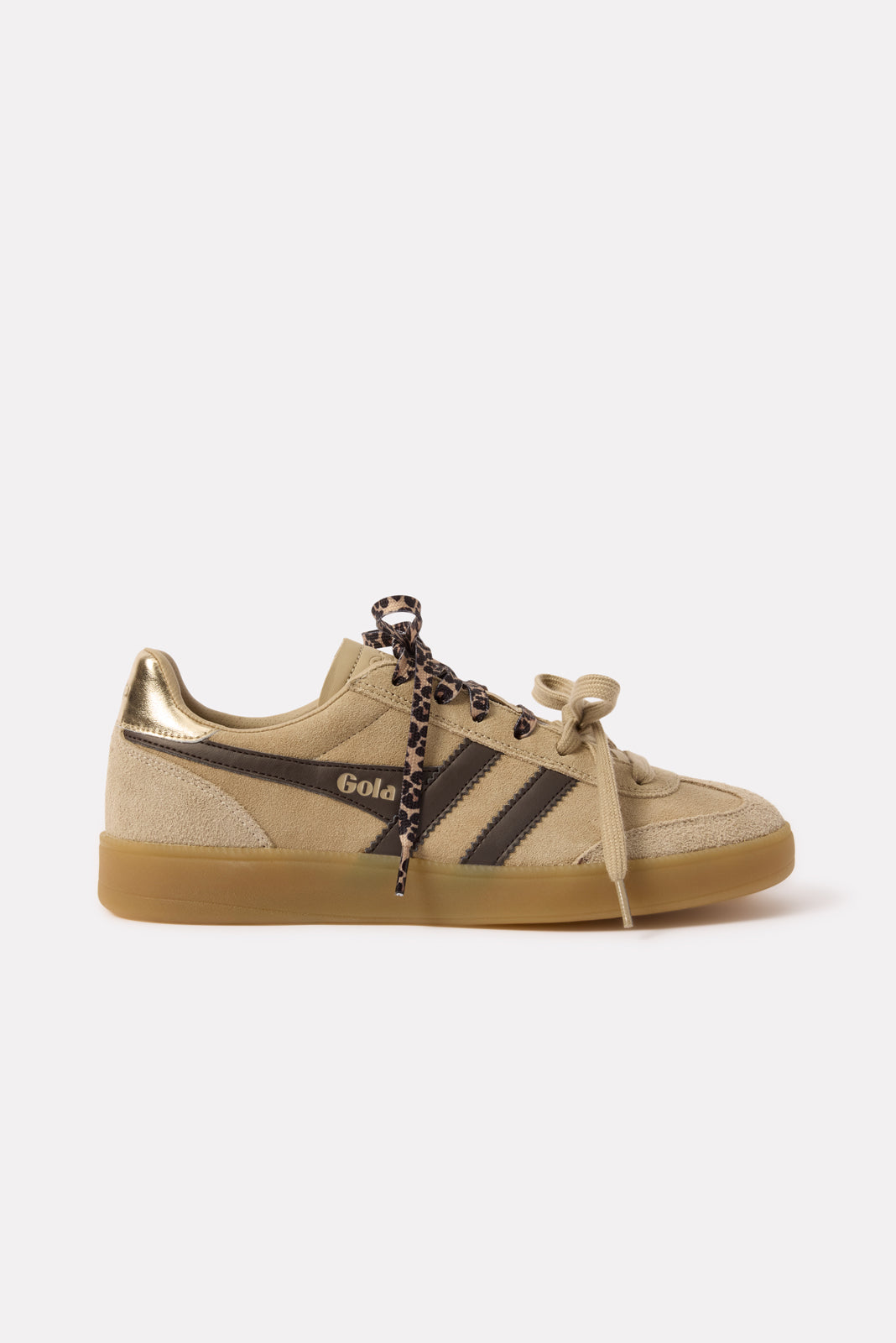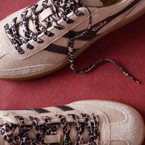 A sporty paneled design defines these chic low-top sneakers by Gola, featuring a soft suede upper,gum sole, metallic heel tab, and two lace options for a customizable look.