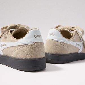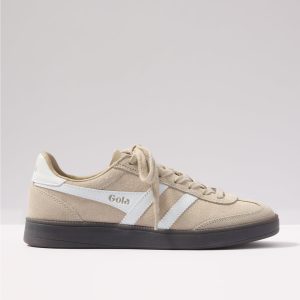 A sporty paneled design defines these chic low-top sneakers by Gola, featuring aneutralsuede upper,contrasting sole, and white leather details.