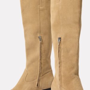 Finished in soft suede, the Virona knee-high boots by Dolce Vita feature a pointed toe, inside zipper closure, and contrasting block heel.