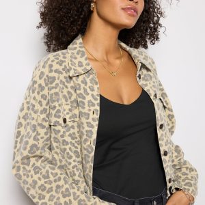 Make a chic statement with the Wild Story Jacket by BlankNYC. Finished in a rayon-cotton blend, this leopard print jacket features a cropped silhouette with chest pockets, front button closures, and an adjustable drawstring hem.